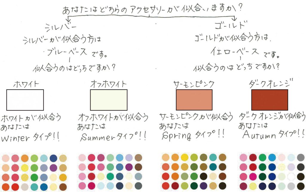 ちなみに年齢を重ねたり、ホルモンバランスの変化で、パーソナルカラーが変わる事もあります。