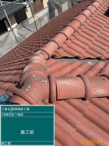 施工前、屋根の角部分(隅巴付近)の瓦に大きな浮きが見られ、防水シートが露出している状態でした。このままでは雨漏りのリスクが高いため、一度瓦を取り外し、土台を整えた上で、パッキン付きの専用ビスにて1枚ずつ強固に再固定いたしました。これにより、台風や地震などの際にもズレにくい構造となっております。