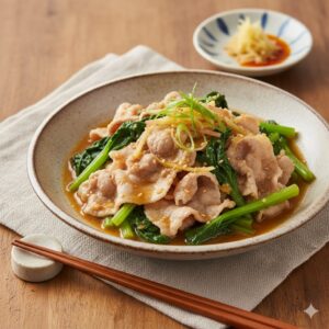 豚肉と小松菜のしょうが蒸し
